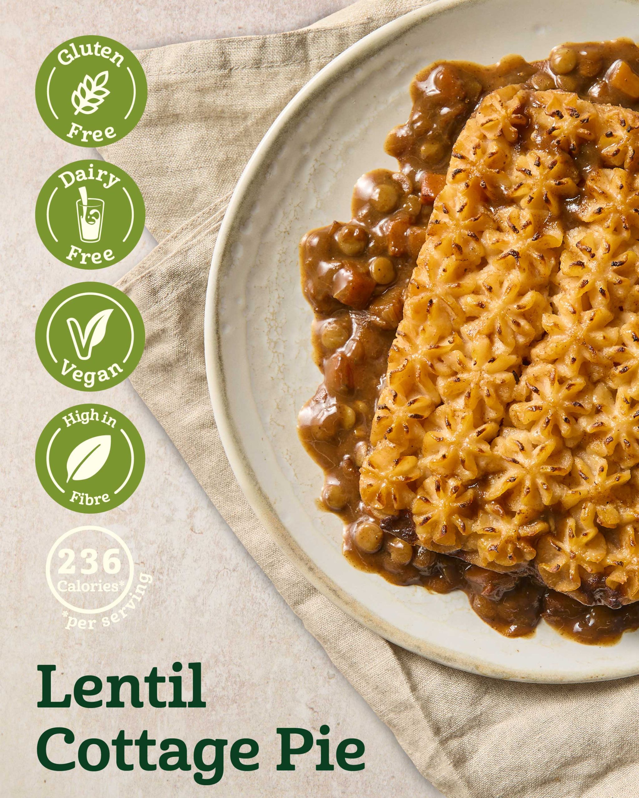 Lentil Cottage Pie is gluten free, wheat free, dairy free and soya free, in fact it’s free of all 14 allergens. We know that gluten can sneak into the gravy and dairy into the mash but we find clever ways to avoid putting ingredients which cause bloating and allergic reactions in our recipes.